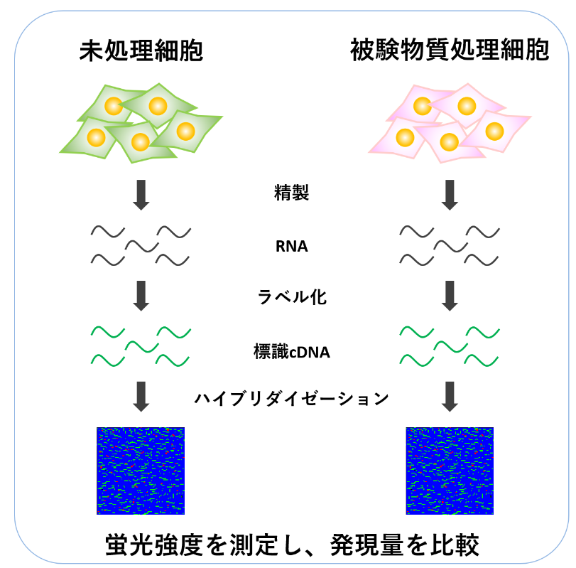 | 測定項目 | DNAマイクロアレイ法による網羅的遺伝子発現解析 GeneChip RNA-seq など |