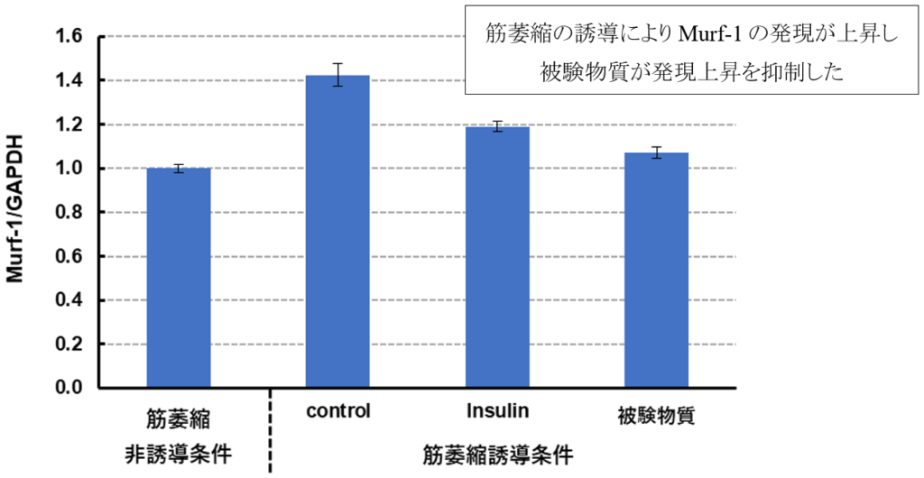 本試験では、主にタンパク質分解酵素の発現定量により、被験物質による筋萎縮抑制作用を評価します。詳細なメカニズムを解明するためのオーダーメイド試験も可能です。